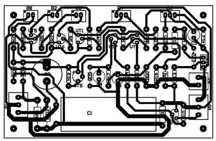 作电压源时:将输出端短路,调整W1使输出电流为最大负载电流的1.2倍左右。选择合适的接线端子,最好使负 作电流源时:将输出端开路,调整W2使输出电压为最大负载电压的1.2倍左右。短路输出端子,调整W2使电流为所需值,接入负载即可。 作测量时:应调整电流或电压使之符合我们的测试条件。譬如我们要测试某个0.5 W的稳压二极管在电流等于30mA时的稳压值,可将电流调至30mA接入二极管,电压表的指示即是稳压值。在测试时电压的调整也应注意,即不能低于二极管的稳压值,如果LED1发光说明电压已低于二极管的稳压值而进入稳压态,应调整电压使之脱离稳压态;也不能调得太高,以防有稳压值高的二极管时发生过载,在这里0.5/0.03=16.6V。 在使用中如果LED1和LED2同时发光则说明电源进入一种临界状态,这时应注意调整电压或电流使之脱离这种状态,只要它不是你所需要的。 右图是印刷电路板图,尺寸110mm×70mm。 你有意制作需要协助时,如机箱、面板、印刷电路板,以及你认为不易采购的特殊元件等,可发电子邮件至:divli@163.com,提出要求。有一定数量时,大家一齐加工,以降低成本。 已有报价,电阻1分,电解电容6分—1元,优质电路板2分5 /平房厘米,1.5毫米厚铝面板5分/平方厘米。 |